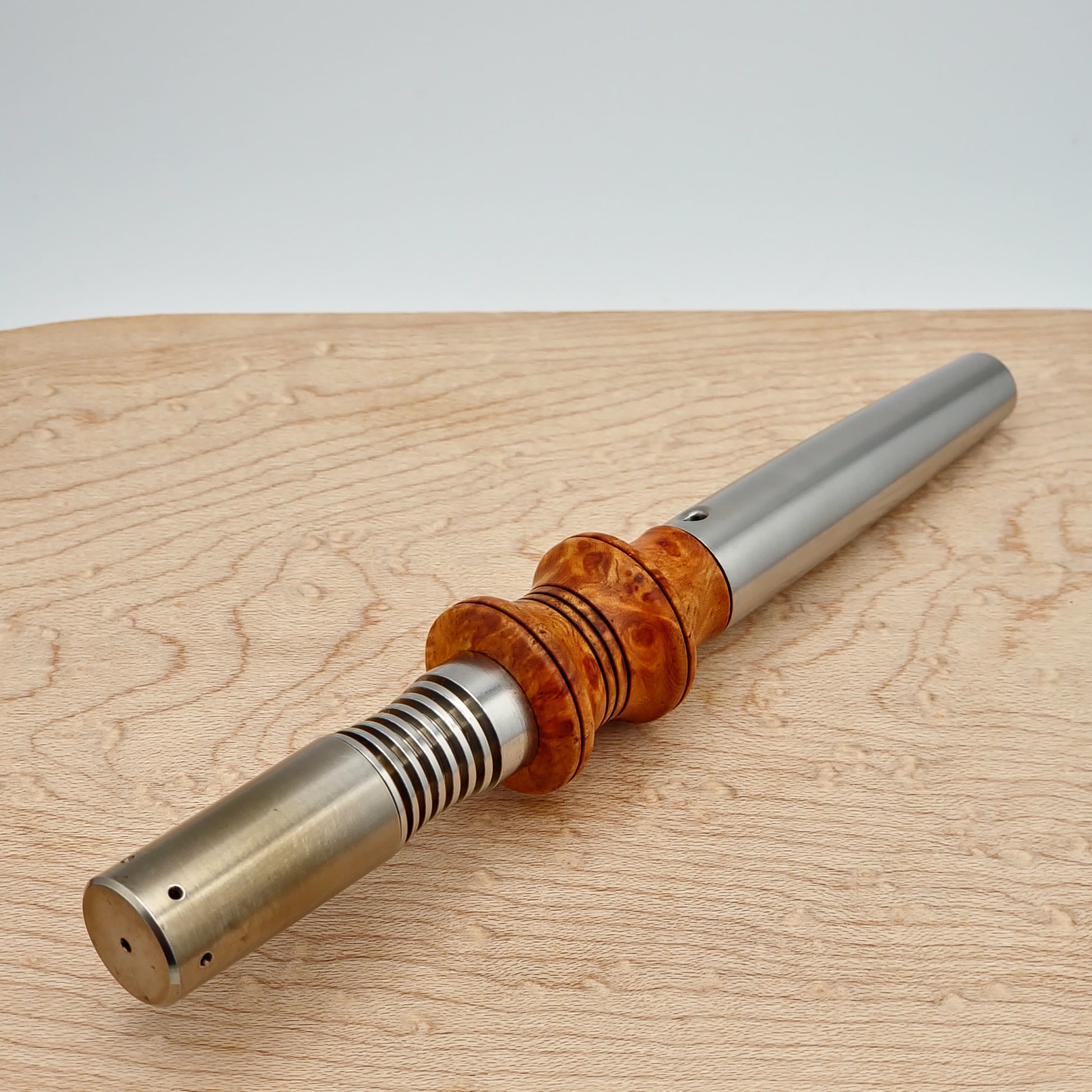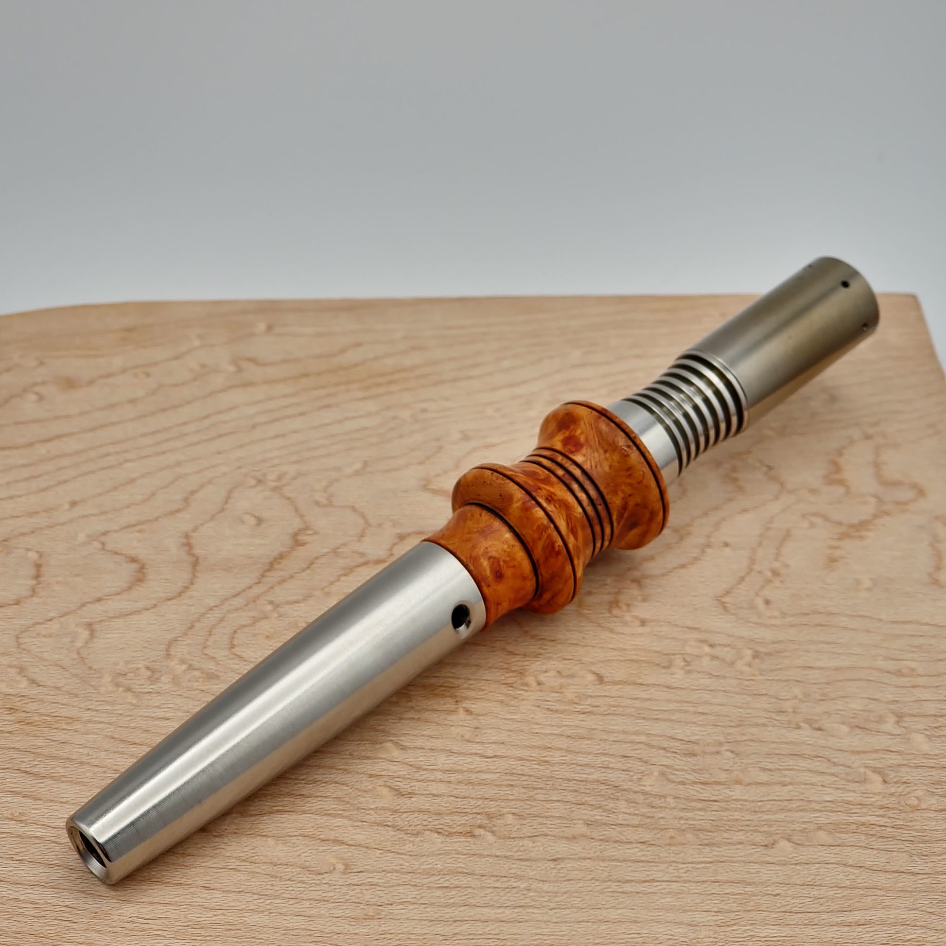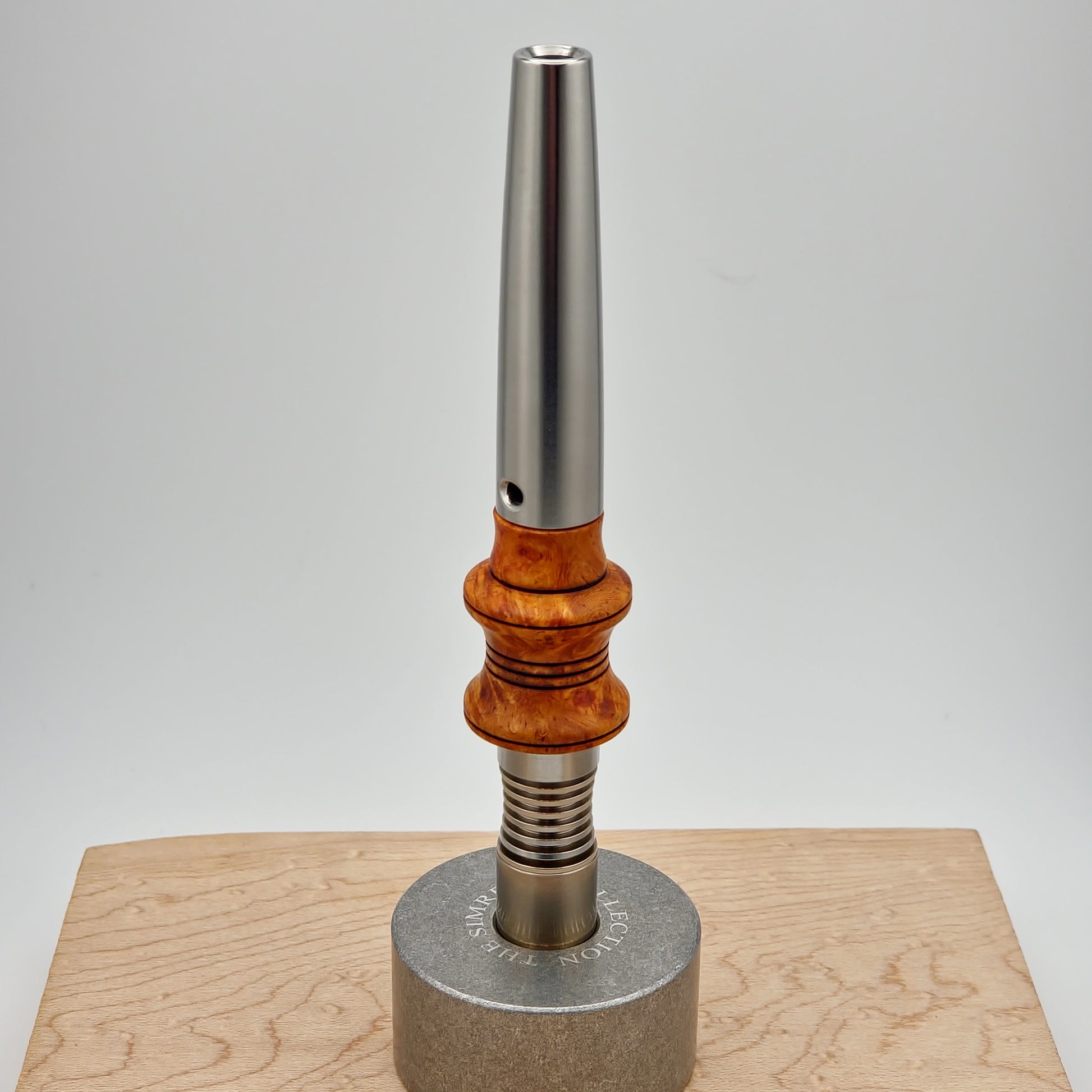 Exhibition Amboyna Burl XL Sleeve made to fit on your Simrell Full Ti Extraction Engine stem setup.