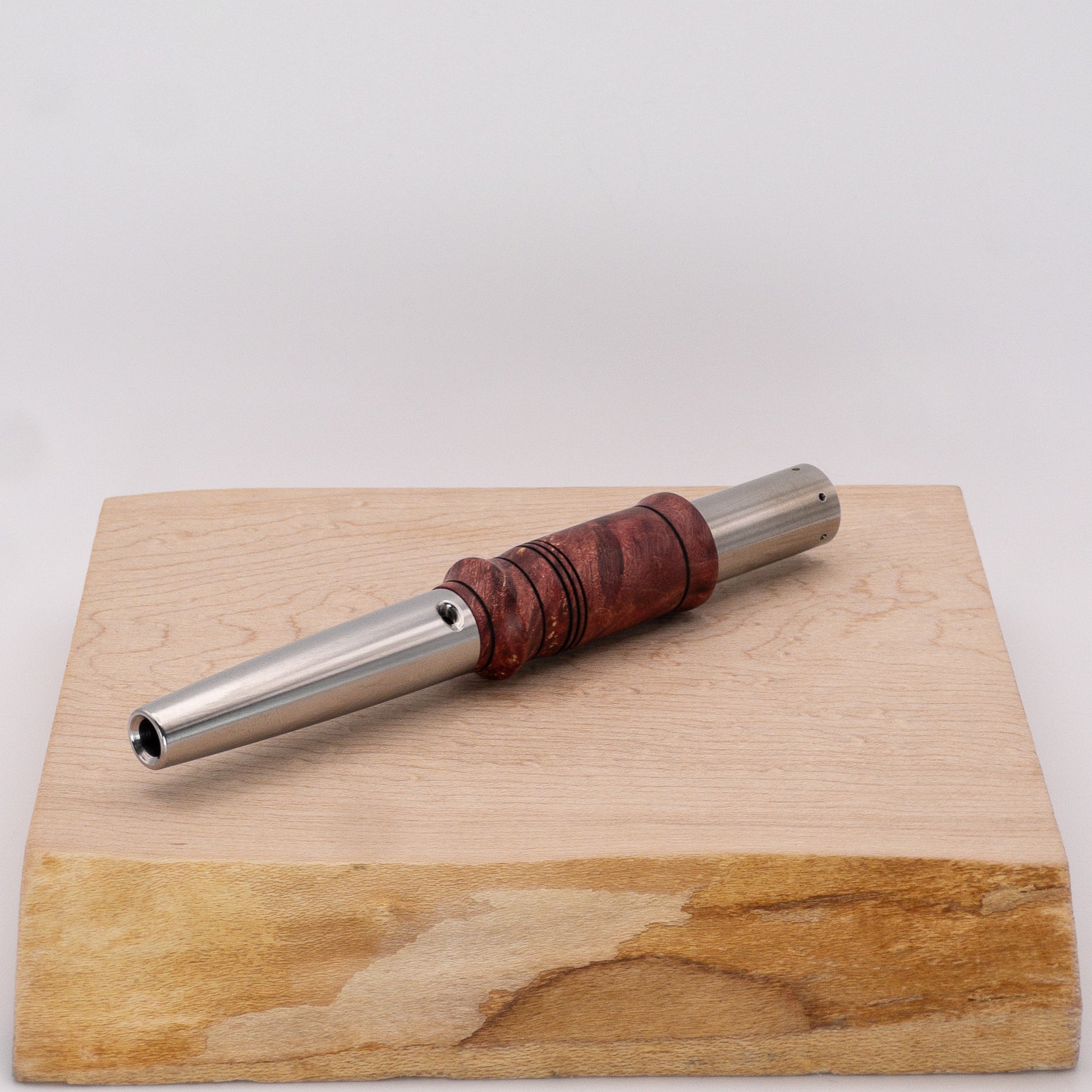 Red Dyed Buckeye Burl XL Sleeve made to fit on your Simrell Full Ti Extraction Engine stem setup.